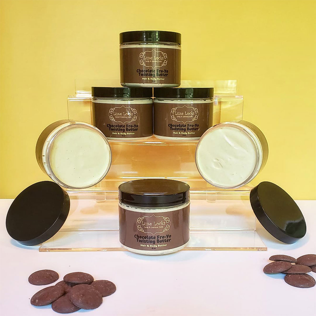 I have naturally curly hair. I can’t say enough good things about the Chocolate Fro-Yo Twisting Butter. It smells amazing and is easy to use. I often sleep on my curls, and they are often flat, when I wake up. I refresh them by using the Twisting Butter and twisting my curls around my fingers. My curls are back, springy, and last the whole day. I also get compliments about the shine. Great product!!